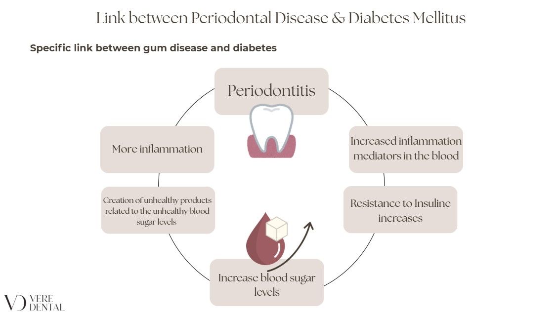 What is the specific link between gum disease and diabetes